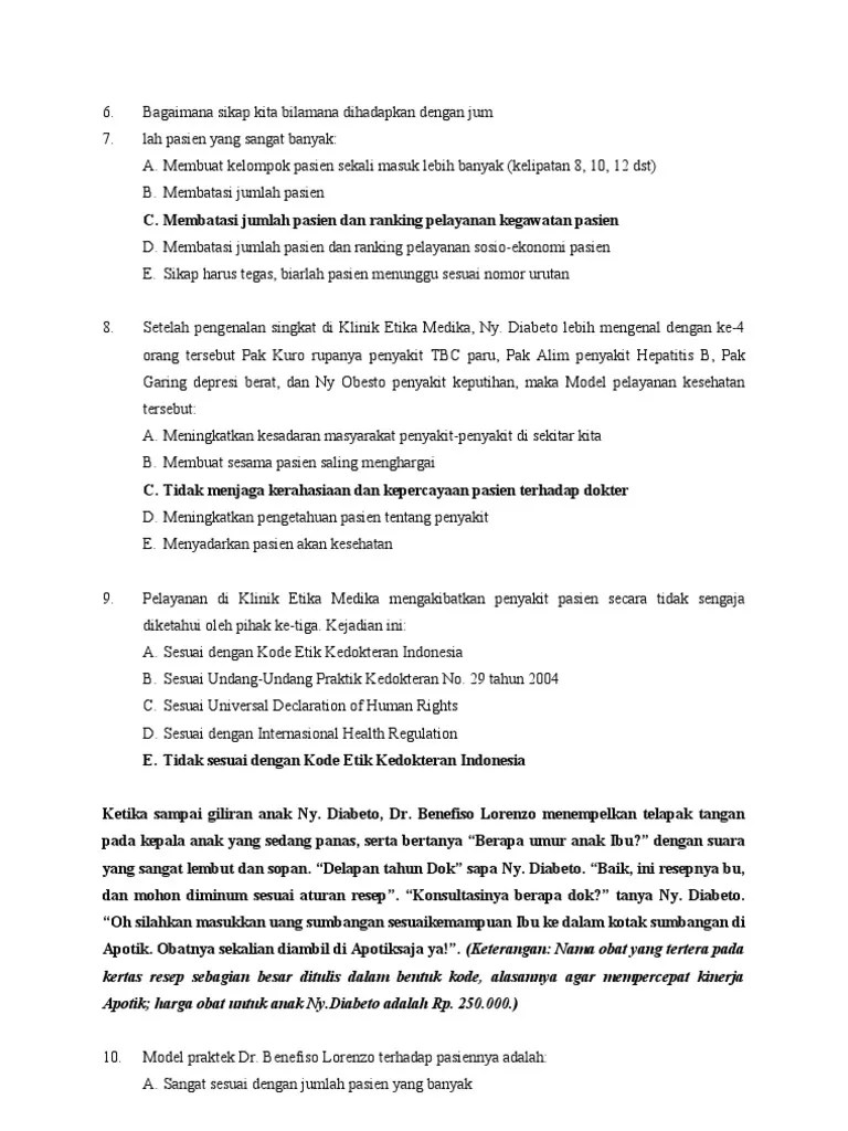 Memb memberi$a eri$an in0or n in0ormasi ga masi garis bes ris besar meng ar mengenai i enai iagnos agnosis pas is pasien ien *. Mahasiswa terhadap istilah bioetika dan isu bioteknologi,. Soal tes kemampuan kognitif reliabel. Prinsip bioetik dimana seorang dokter. Soal pilihan ganda materi etika keperawatan dan jawaban.